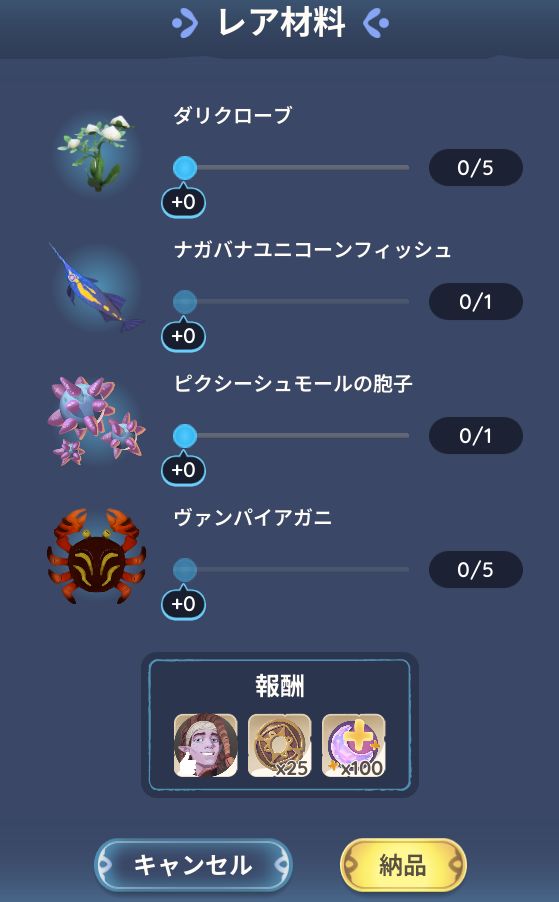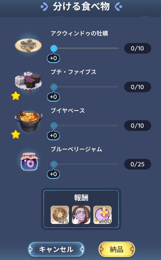 納品アイテムのバーをスライドさせて、納品ボタンをクリック。