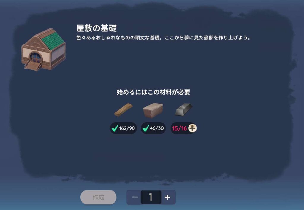 屋敷の外装パーツレシピを入手したら、今度は作り方を把握しましょう!