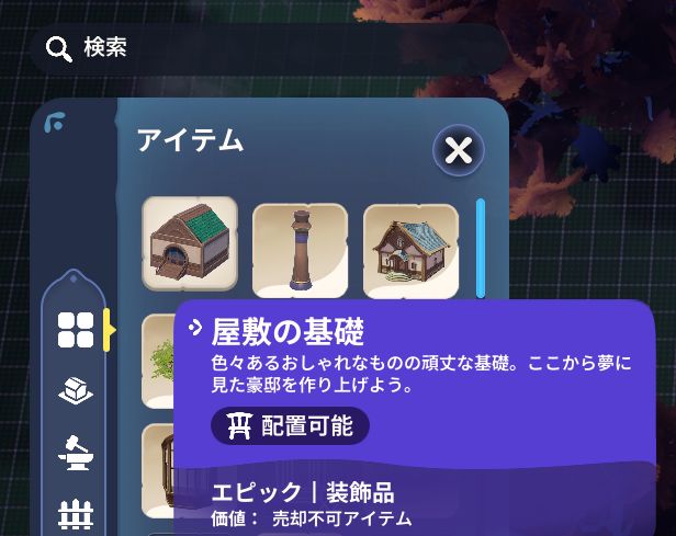 - 設計図登録後、ハウジングエリアに設置できる